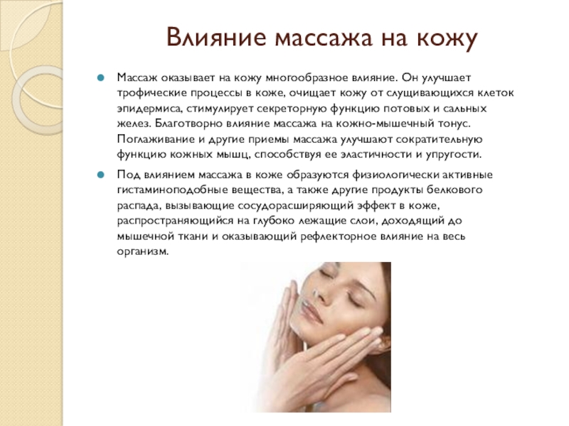 Слайд 4Влияние массажа на кожу