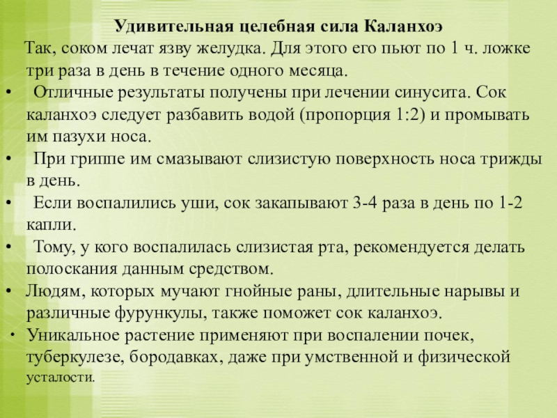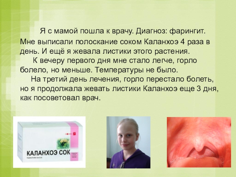 Сначала соком лечили насморк. Здоровым людям сок рекомендовали как профилактическое средство.