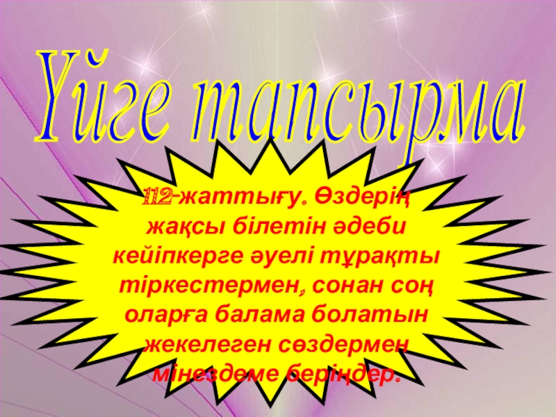 112-жаттығу. Өздерің жақсы білетін әдеби кейіпкерге әуелі тұрақты тіркестермен,