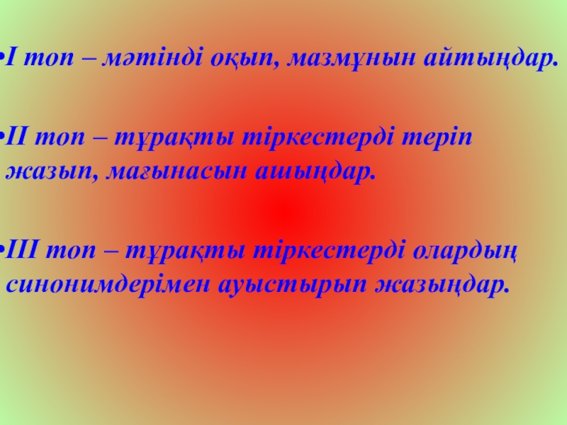 І топ – мәтінді оқып, мазмұнын айтыңдар.