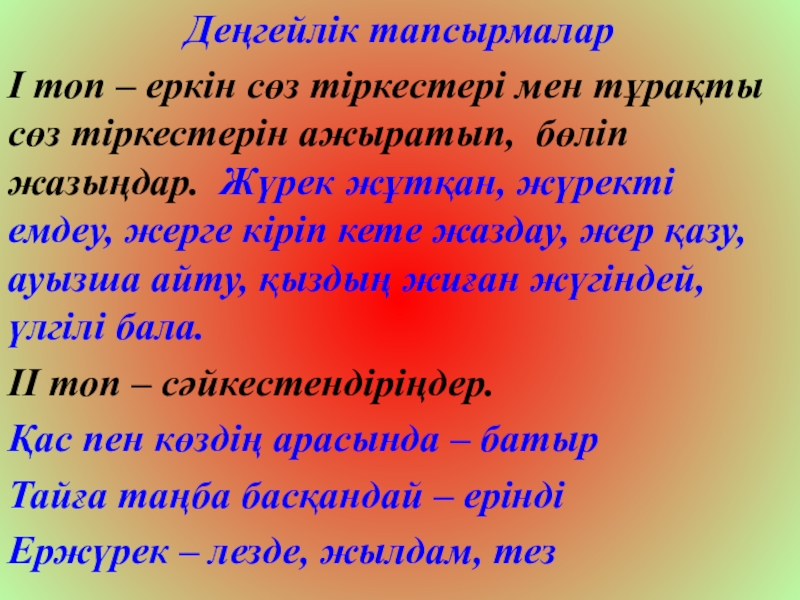 І топ – еркін сөз тіркестері мен тұрақты сөз тіркестерін
