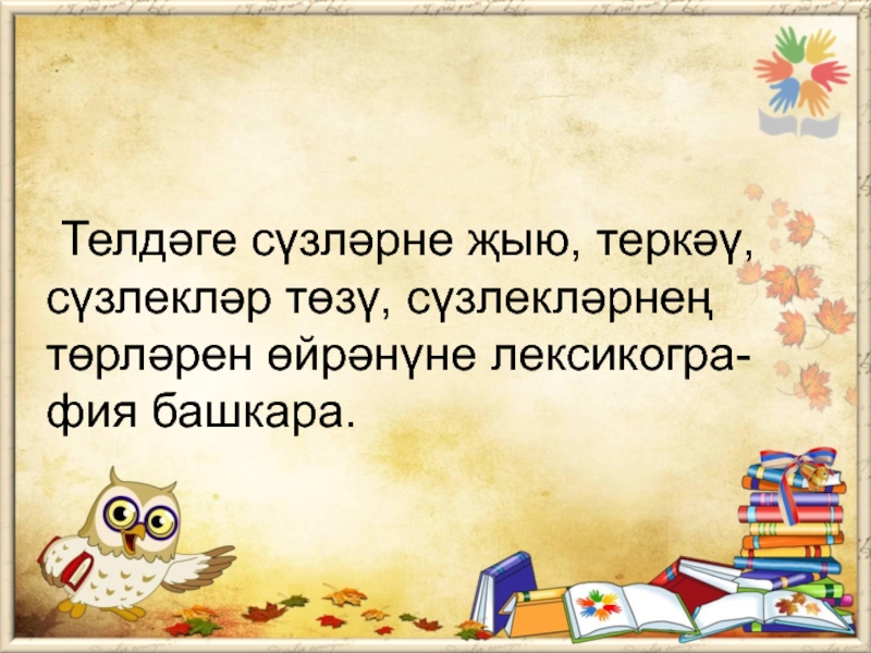 Слайд 10 Телдәге сүзләрне җыю, теркәү, сүзлекләр төзү, сүзлекләрнең төрләрен өйрәнүне лексикогра-фия
