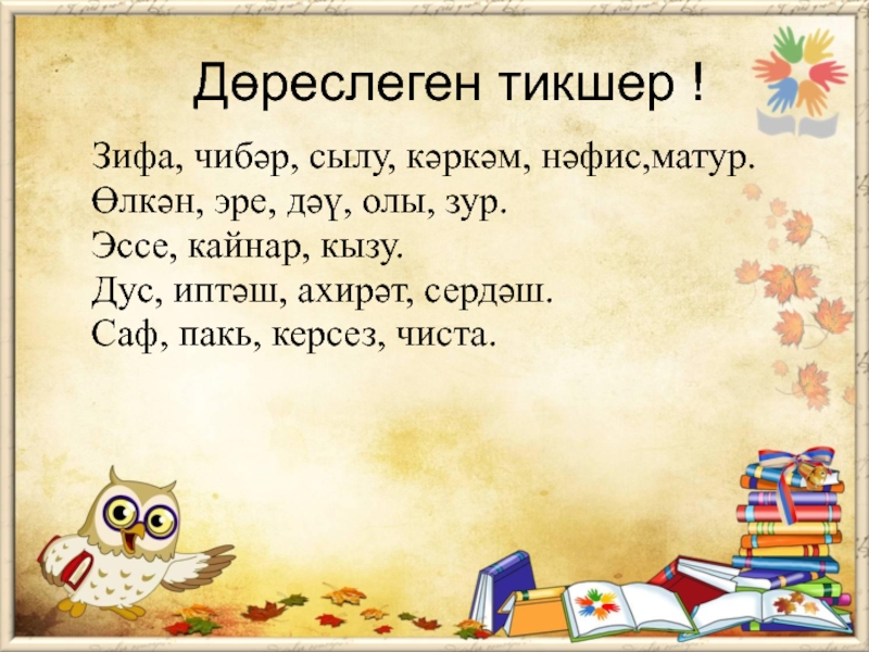 Слайд 3 “Сөйләгәндә төкрек чәчмәгез. Бәлки яулык илә авызыгызны каплагыз һәм башыгызны