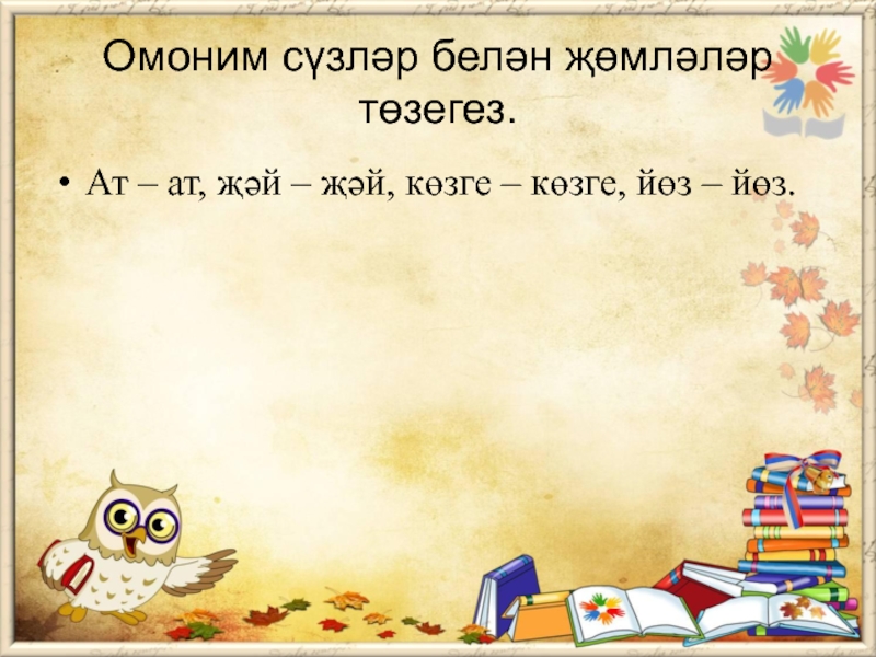 Слайд 17Омоним сүзләр белән җөмләләр төзегез.