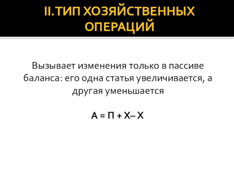 Слайд 57II.ТИП ХОЗЯЙСТВЕННЫХ ОПЕРАЦИЙ