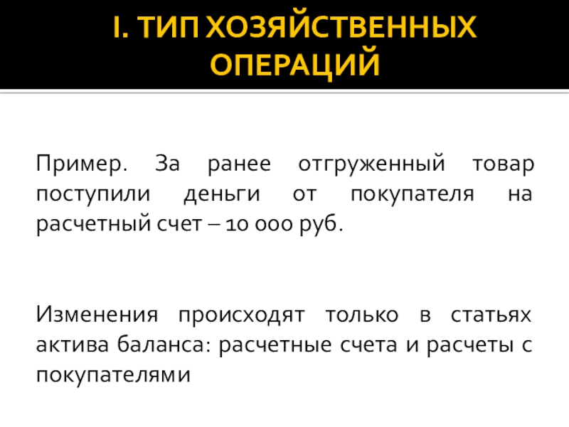 Слайд 53I. ТИП ХОЗЯЙСТВЕННЫХ ОПЕРАЦИЙ