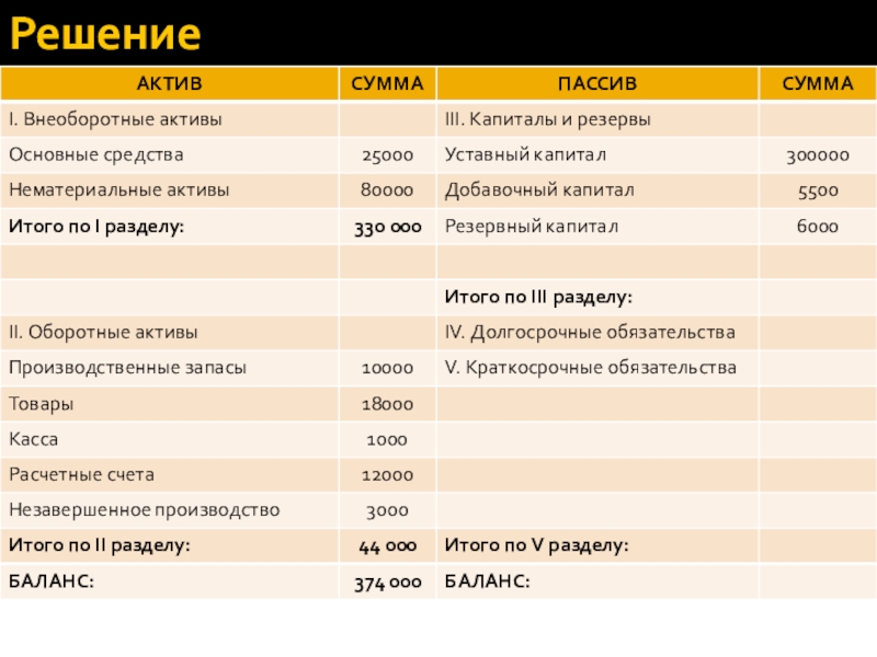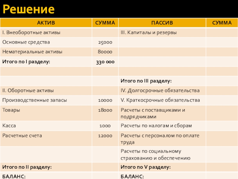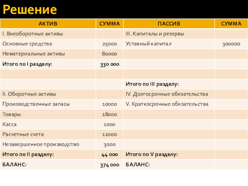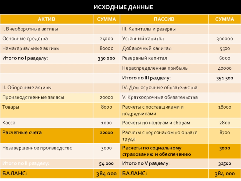 Цель задания: научиться составлять бухгалтерский баланс по данным бухгалтерского учета