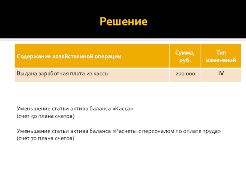 сторону уменьшения его статей. Итог баланса также уменьшается на сумму хозяйственной операции по активу и пассиву