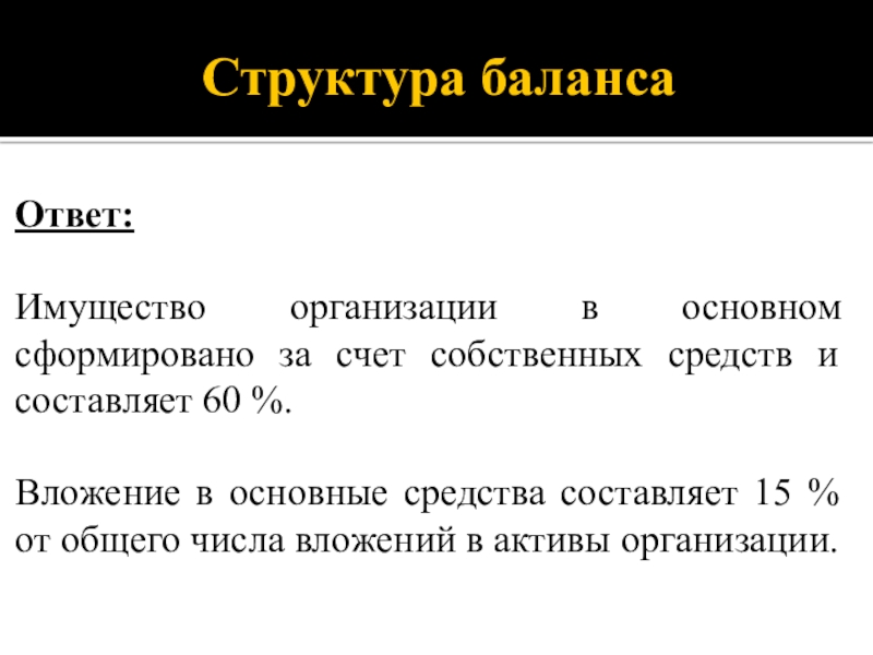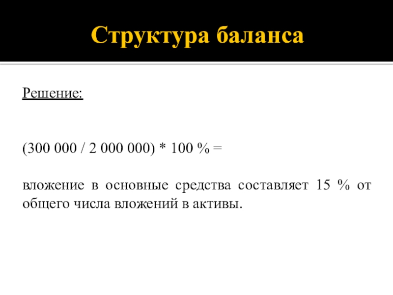 вложение в основные средства составляет 15 % от общего числа вложений в активы.