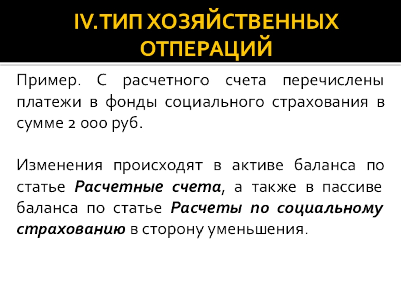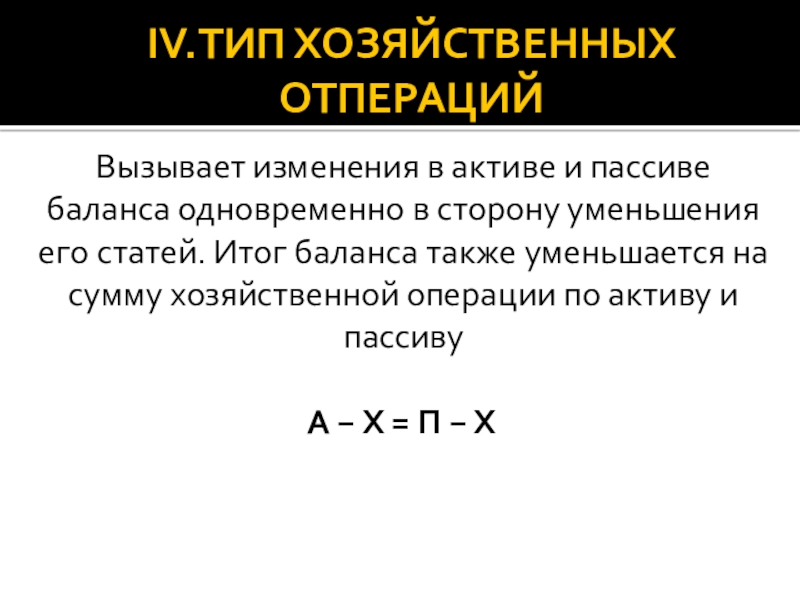Слайд 65IV.ТИП ХОЗЯЙСТВЕННЫХ ОТПЕРАЦИЙ