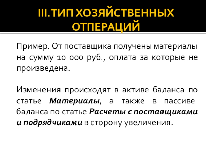 Слайд 61III.ТИП ХОЗЯЙСТВЕННЫХ ОТПЕРАЦИЙ