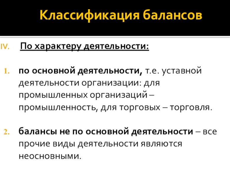 балансы не по основной деятельности – все прочие виды деятельности являются неосновными.