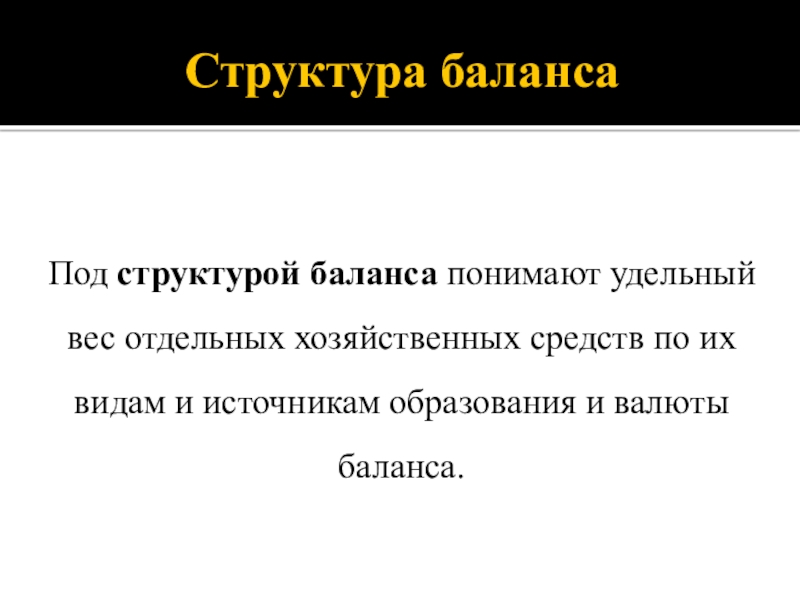Под структурой баланса понимают удельный вес отдельных хозяйственных средств по
