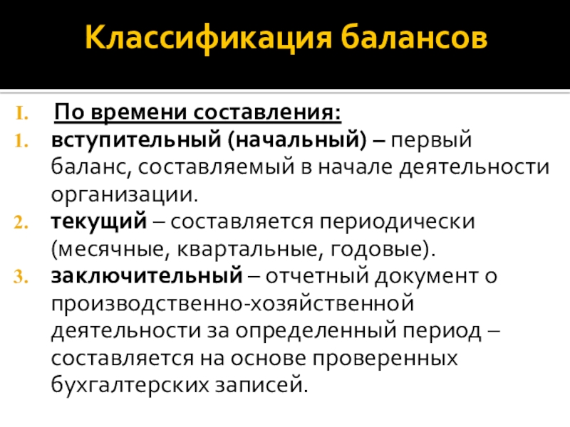 заключительный – отчетный документ о производственно-хозяйственной деятельности за определенный период – составляется на основе проверенных бухгалтерских записей.