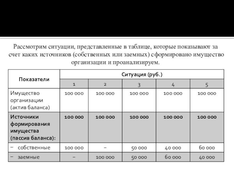 Слайд 8Рассмотрим ситуации, представленные в таблице, которые показывают за счет каких источников