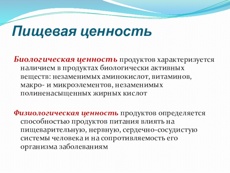 Биологическая ценность продуктов характеризуется наличием в продуктах биологически активных веществ: