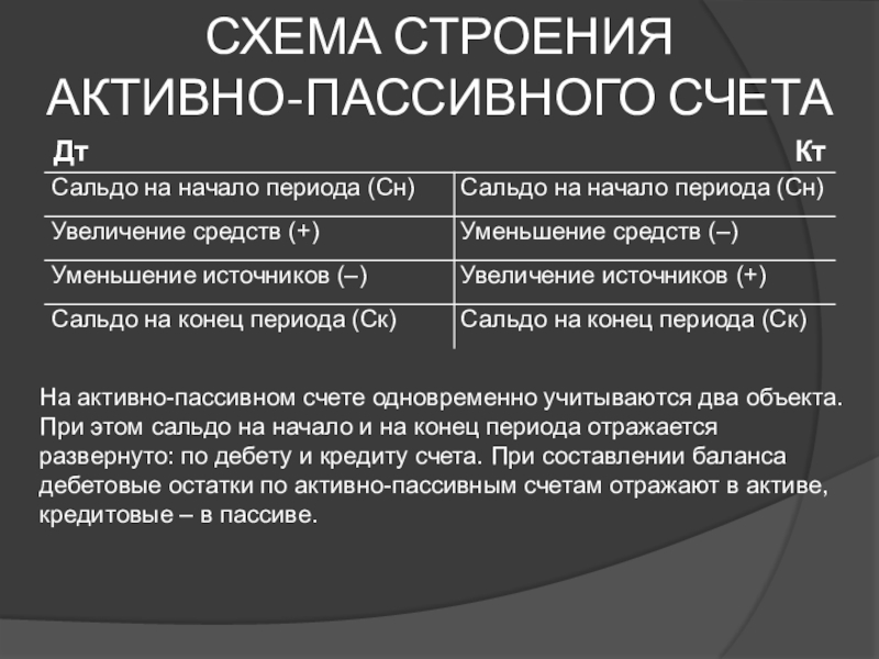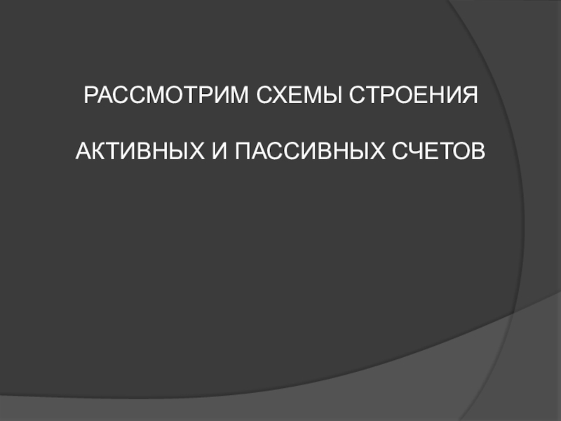Слайд 15РАССМОТРИМ СХЕМЫ СТРОЕНИЯ АКТИВНЫХ И ПАССИВНЫХ СЧЕТОВ
