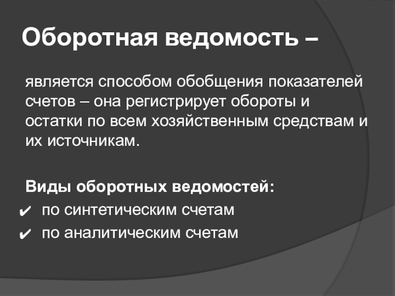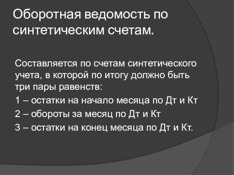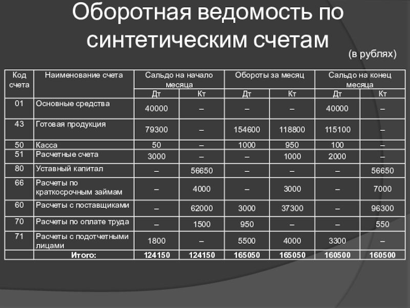Слайд 83Оборотная ведомость по синтетическим счетам