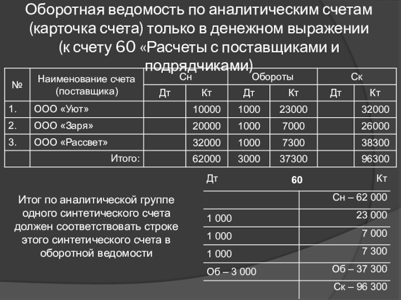 Слайд 84Оборотная ведомость по аналитическим счетам.