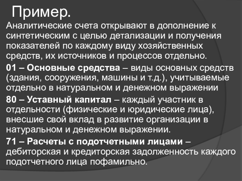 На каждый вид хозяйственных средств и их источников открывается отдельный счет.