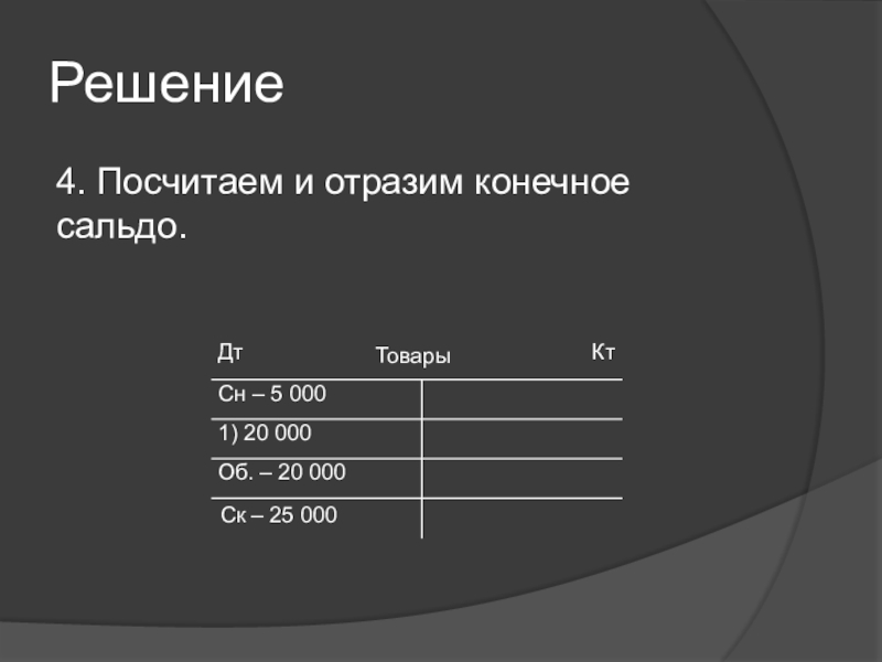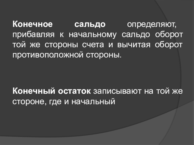 Слайд 14Конечное сальдо определяют, прибавляя к начальному сальдо оборот той же стороны