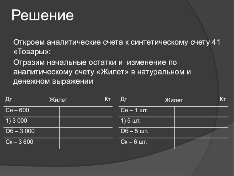 изменение по аналитическому счету «Жилет» в натуральном и денежном выражении