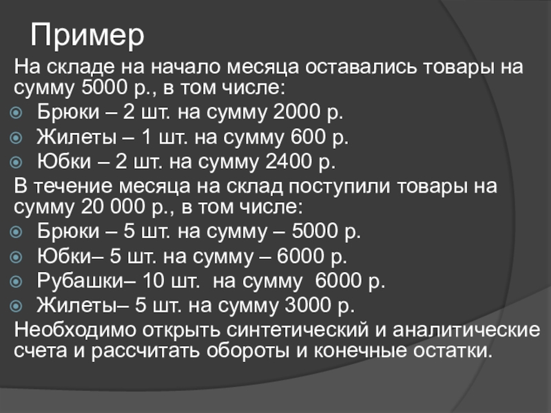 Необходимо открыть синтетический и аналитические счета и рассчитать обороты и конечные остатки.