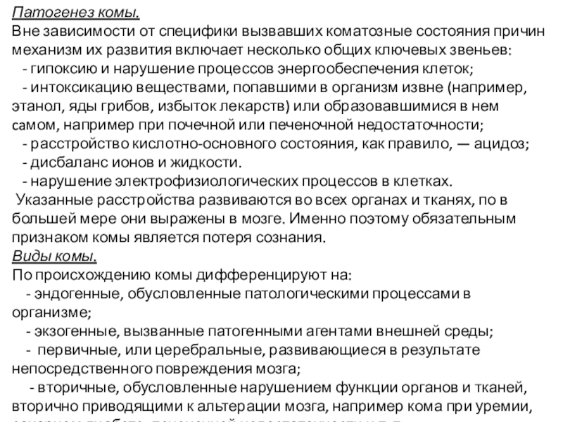 Вне зависимости от специфики вызвавших коматозные состояния причин механизм их