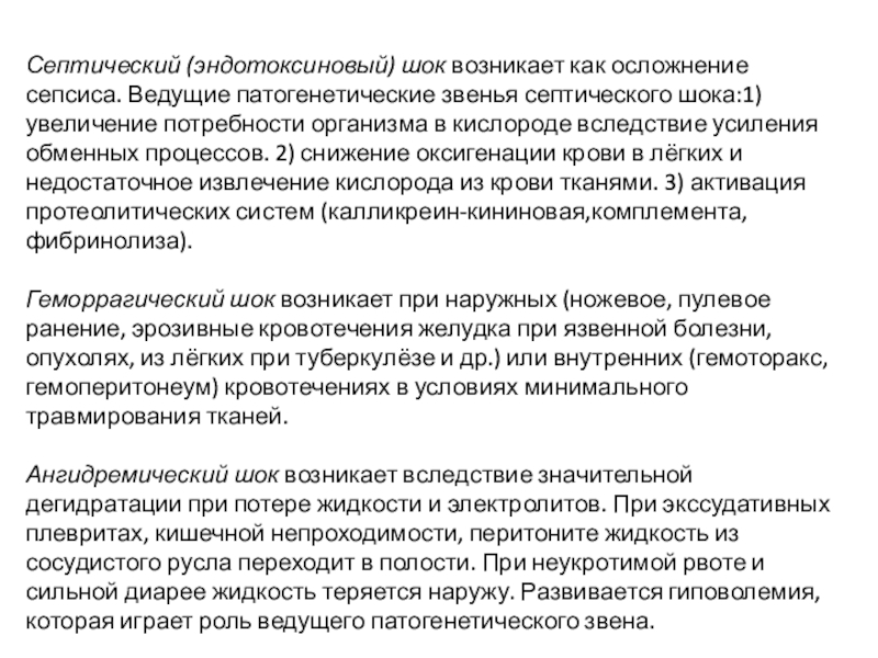 Слайд 19Септический (эндотоксиновый) шок возникает как осложнение сепсиса. Ведущие патогенетические звенья септического
