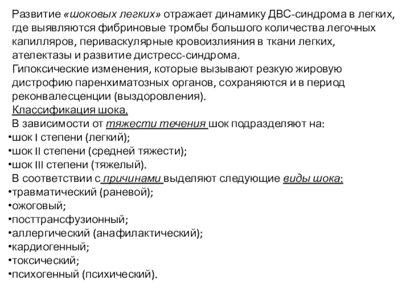 Слайд 14Развитие «шоковых легких» отражает динамику ДВС-синдрома в легких, где выявляются фибриновые