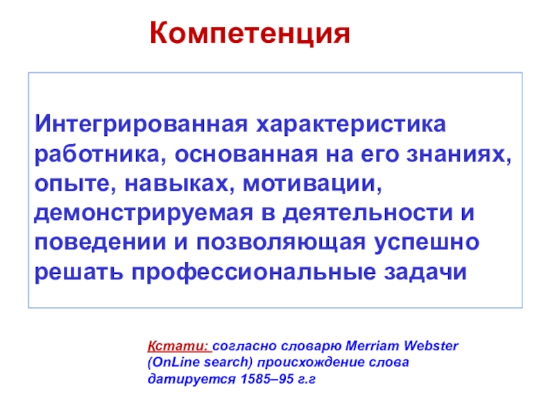 Интегрированная характеристика работника, основанная на его знаниях, опыте, навыках, мотивации, демонстрируемая