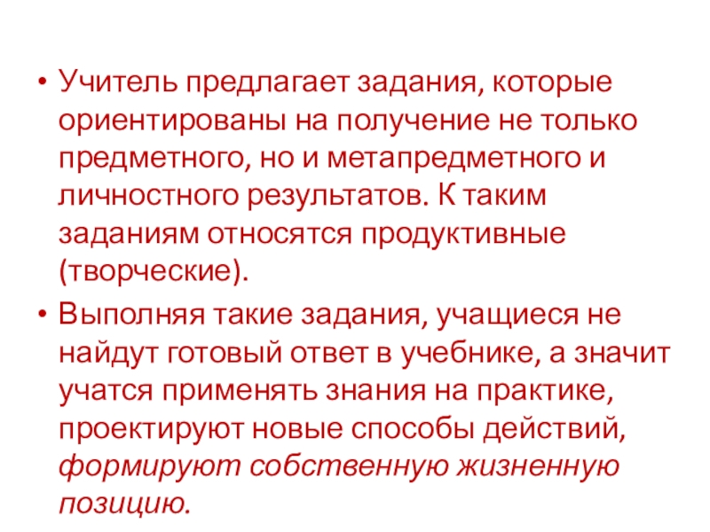 и метапредметного и личностного результатов. К таким заданиям относятся продуктивные (творческие).
