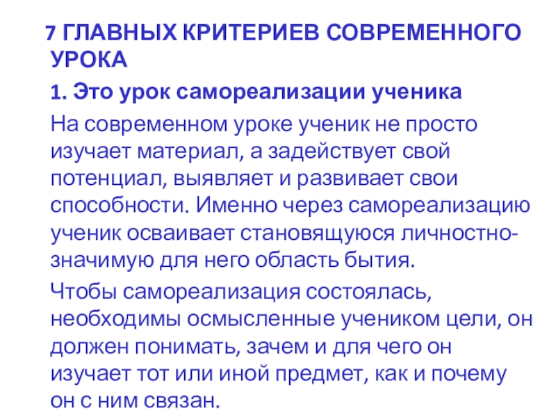 Слайд 12 7 ГЛАВНЫХ КРИТЕРИЕВ СОВРЕМЕННОГО УРОКА