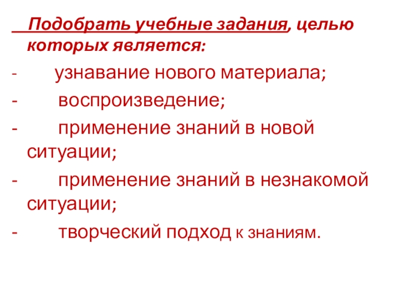 Слайд 48 Подобрать учебные задания, целью которых является: