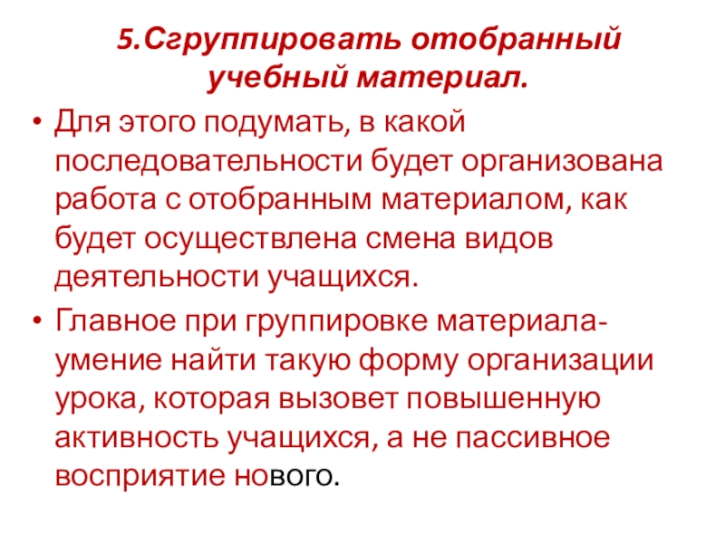 Слайд 51 5.Сгруппировать отобранный учебный материал.