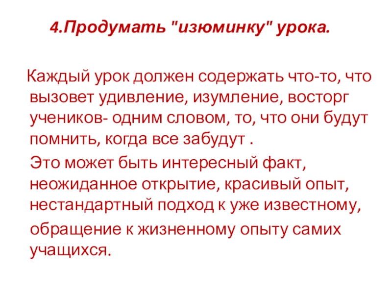 Каждый урок должен содержать что-то, что вызовет удивление, изумление, восторг учеников- одним словом, то, что они будут помнить, когда все забудут .