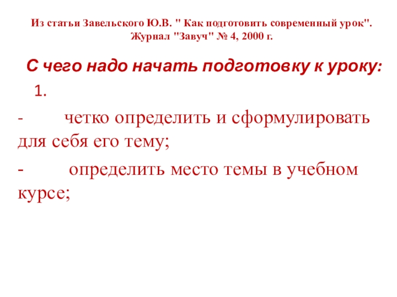 Слайд 44Из статьи Завельского Ю.В. " Как подготовить современный урок".