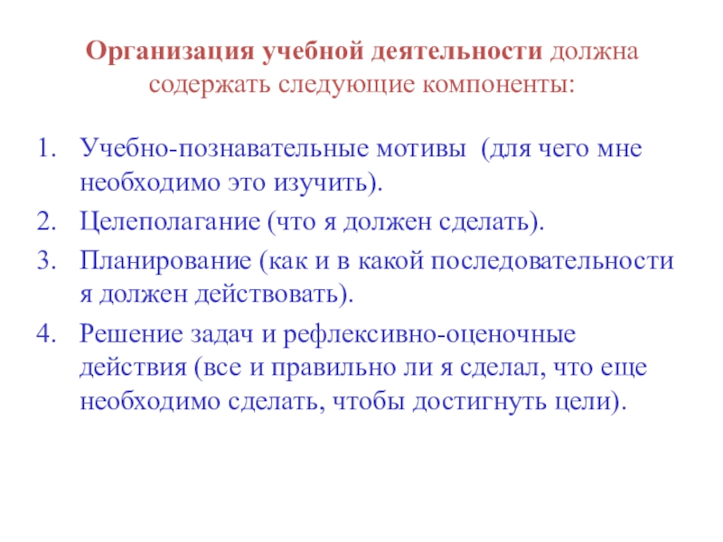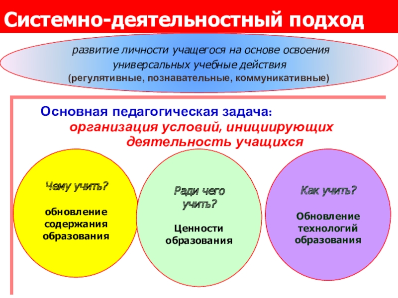 Именно собственное действие может стать основой формирования в будущем его самостоятельности. Значит, образовательная задача состоит в организации условий, побуждающих к действию учащихся.