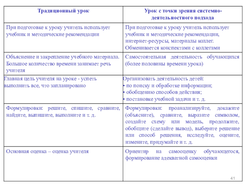 4.Сопоставление традиционного и современного урока (в контексте реализации ФГОС второго поколения).
