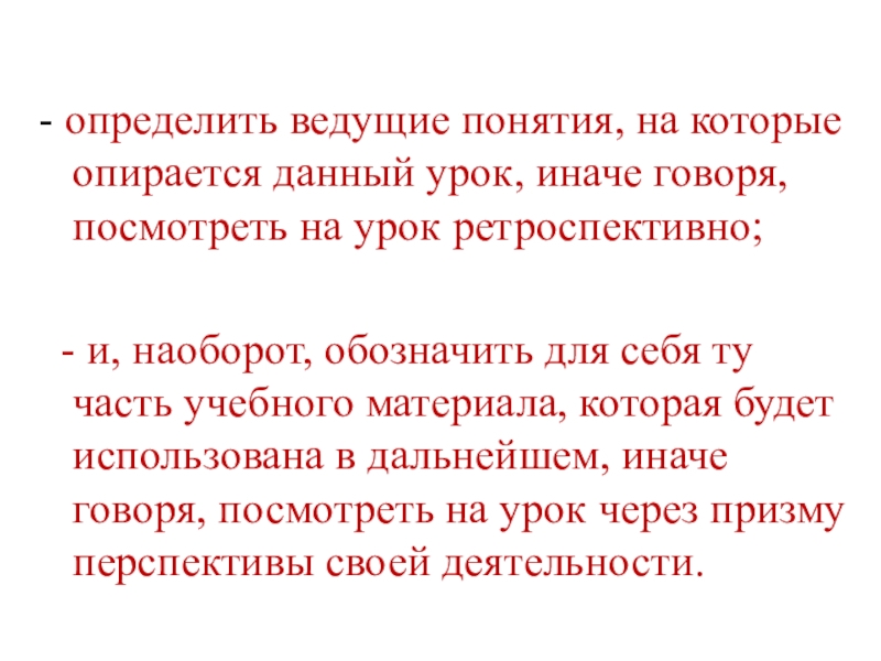 - определить ведущие понятия, на которые опирается данный урок, иначе говоря, посмотреть