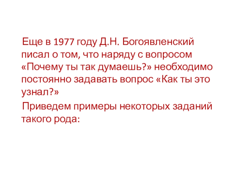 Еще в 1977 году Д.Н. Богоявленский писал о том,