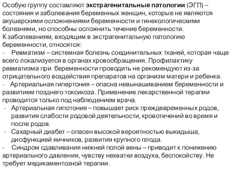 Слайд 14Особую группу составляют экстрагенитальные патологии (ЭГП) – состояния и заболевания беременных