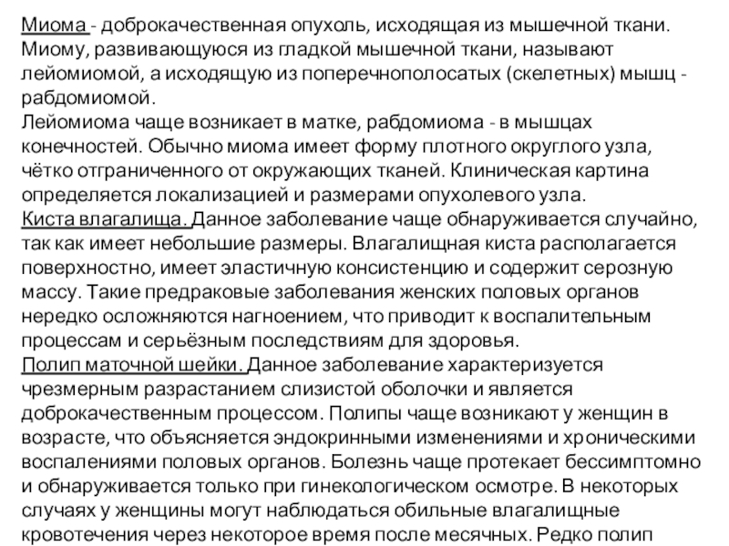 Слайд 6Миома - доброкачественная опухоль, исходящая из мышечной ткани. Миому, развивающуюся из
