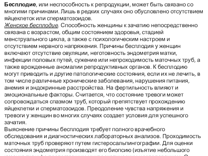 Слайд 10Бесплодие, или неспособность к репродукции, может быть связано со многими причинами.