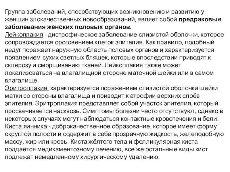 Слайд 5Группа заболеваний, способствующих возникновению и развитию у женщин злокачественных новообразований, являет