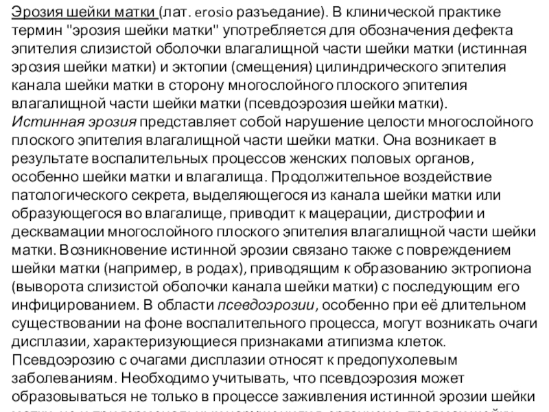 Слайд 8Эрозия шейки матки (лат. erosio разъедание). В клинической практике термин "эрозия