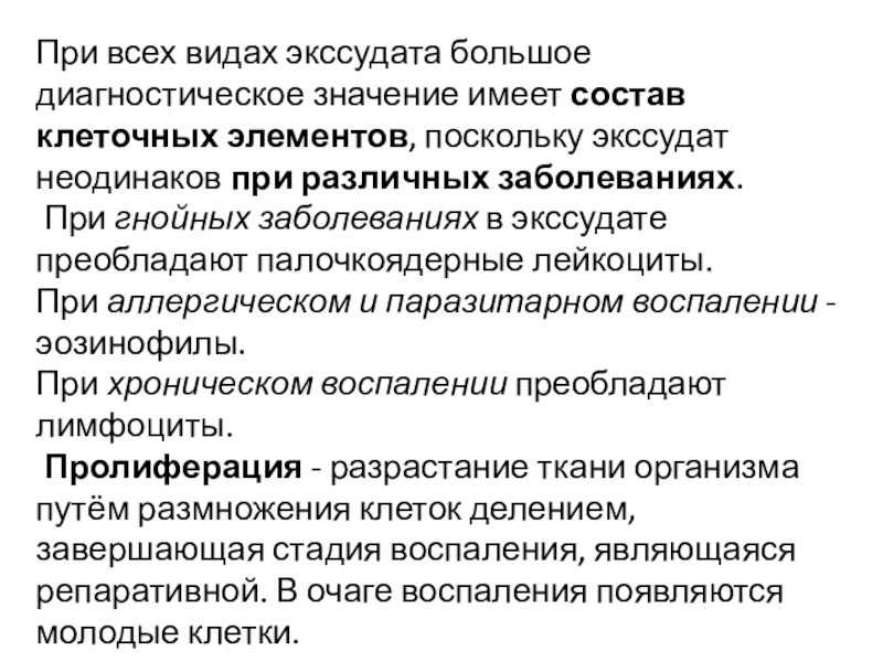 Слайд 5При всех видах экссудата большое диагностическое значение имеет состав клеточных элементов,