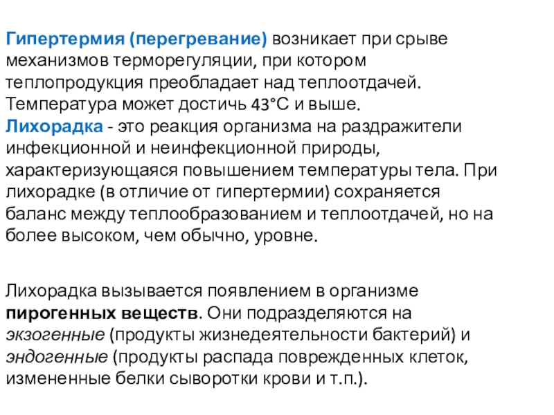 Слайд 16Гипертермия (перегревание) возникает при срыве