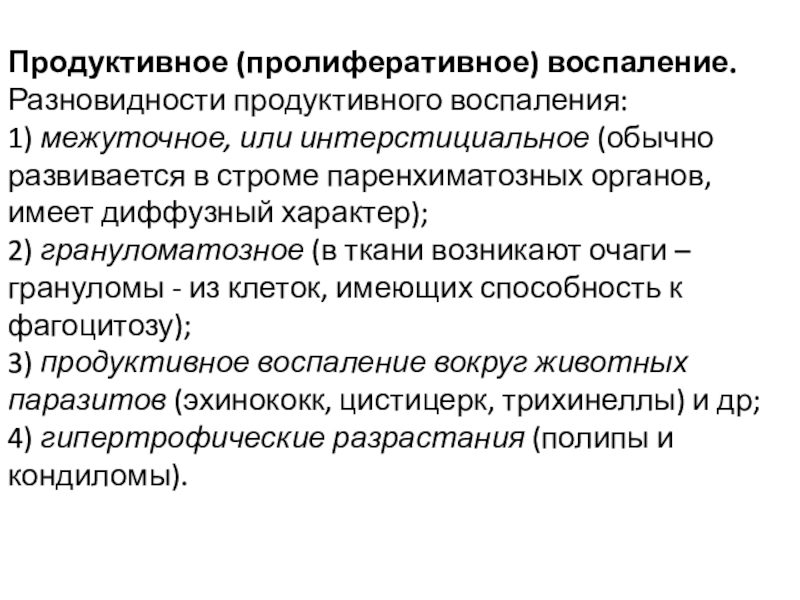 2) грануломатозное (в ткани возникают очаги – грануломы - из клеток, имеющих способность к фагоцитозу);
