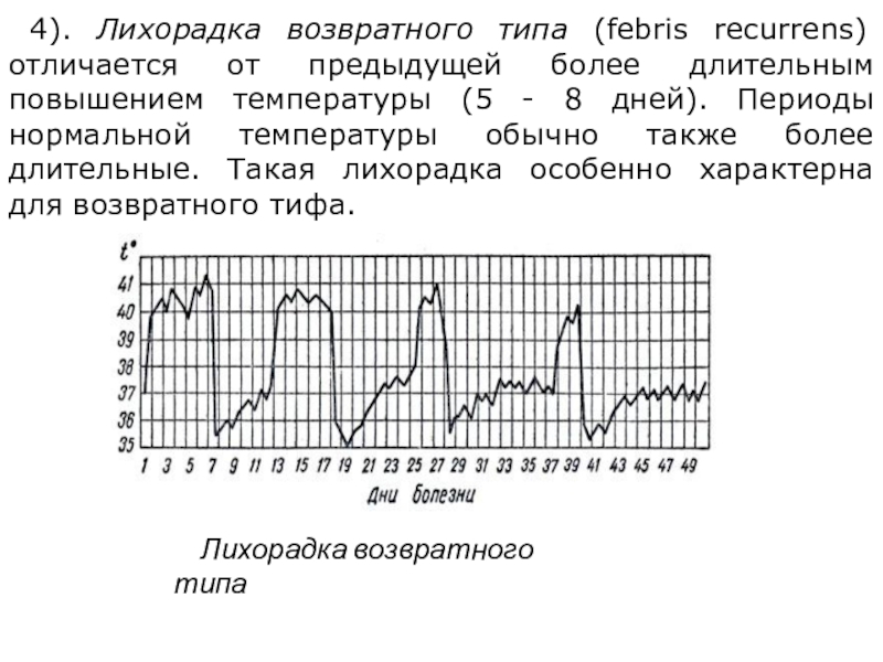 Слайд 224). Лихорадка возвратного типа (febris recurrens) отличается от предыдущей более длительным